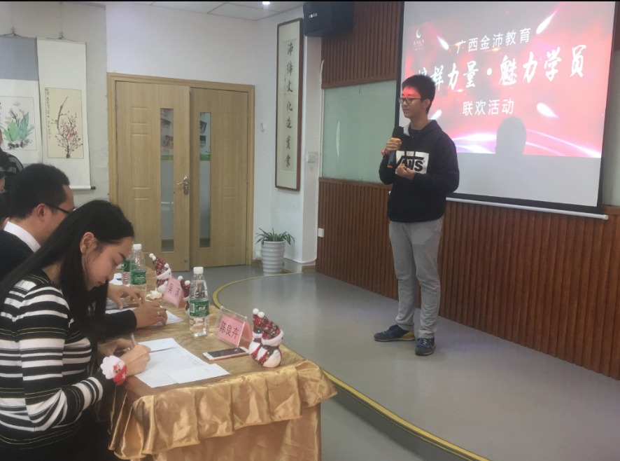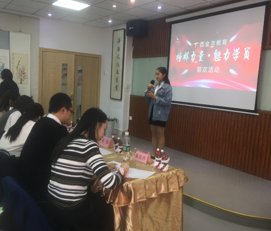 本次活動由廣西金沛教育發(fā)展有限公司南湖校區(qū)主辦,旨在通過本次的匯報演講,促進學員交流。金沛教育領導及金沛高級教師到現(xiàn)場觀摩了學員的演講,并為獲獎選手頒獎。