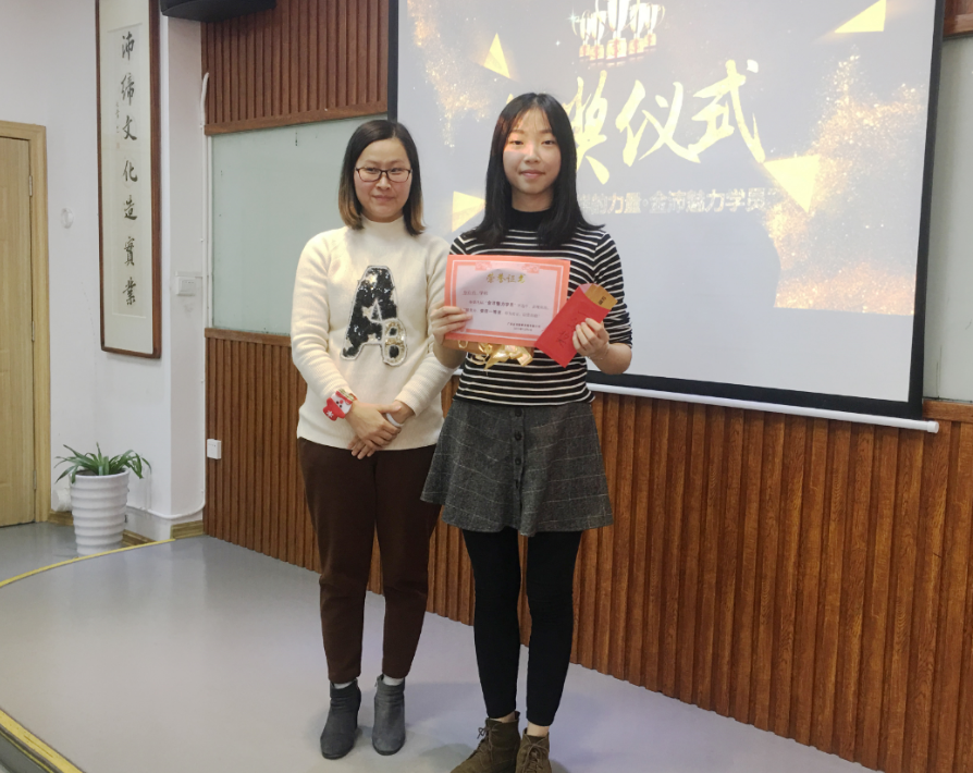 金沛南湖校區(qū)張金雪校長為鄢玲格頒發(fā)一等獎