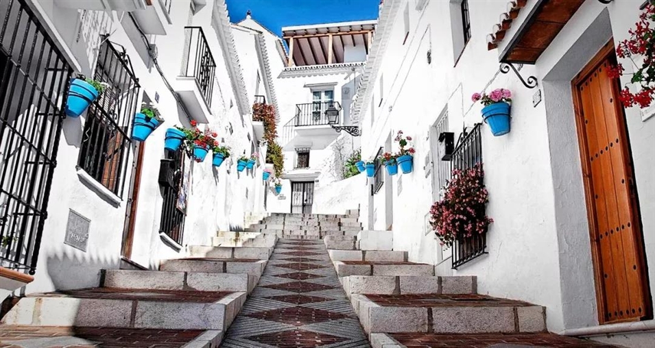 米哈斯是安達(dá)盧西亞省太陽(yáng)海岸山區(qū)的一個(gè)小鎮(zhèn),人稱“白色小鎮(zhèn)”。米哈斯分為山上山下兩部分,山下是米哈斯海岸,太陽(yáng)海岸的組成部分之一,山上綠樹環(huán)抱中的是米哈斯小鎮(zhèn)。小鎮(zhèn)上已有上千年歷史的白色建筑群坐落在山巒上,俯視著地中海,也眺望著大海對(duì)面的非洲大陸?!鞍咨℃?zhèn)”的美稱因此而來。