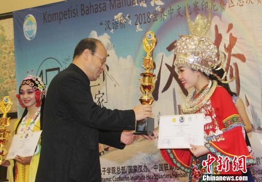 肖千為獲得大學(xué)組一等獎的選手頒獎并致辭。他說,“漢語橋”中文比賽已經(jīng)走過了17個春秋,吸引了包括印尼在內(nèi)的110多個國家的上萬名青少年參賽,成為國際人文交流領(lǐng)域的一大知名品牌。各國青年學(xué)生通過參加比賽,不僅提高了漢語水平,體驗了中國文化,而且向中國和世界人民展示了各自國家的獨(dú)特文化風(fēng)采。