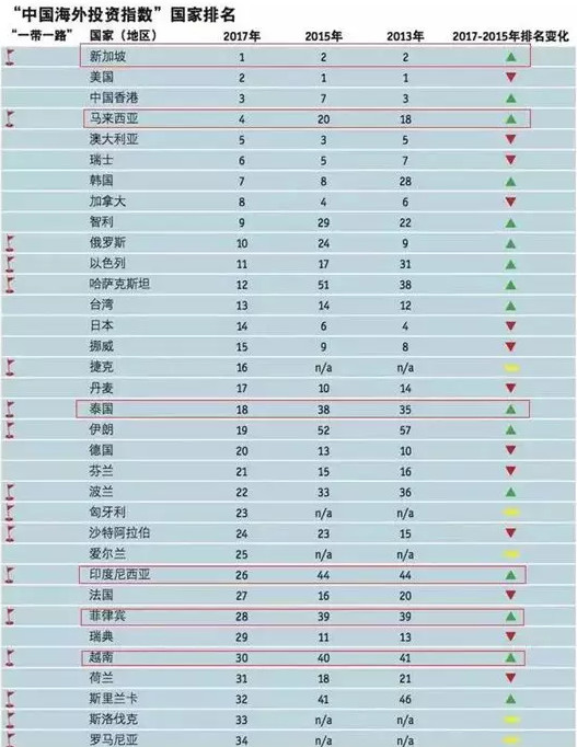 根據(jù)最新發(fā)布的中國海外投資指數(shù)來看,東盟國家排名第一。2017年,新加坡超越美國排名第一。