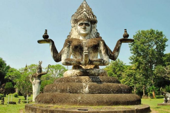 坐落在首都萬(wàn)象東南部湄公河畔上的香昆寺(又叫佛像公園),寺如其名,公園里到處都是千姿百態(tài)的佛像和雕塑,這是一個(gè)怪人荒誕野心的紀(jì)念物。它的創(chuàng)建者創(chuàng)建者班勒威·蘇里拉是一名泰國(guó)僧侶,他將印度教和佛教的哲學(xué)思想、傳說(shuō)和肖像學(xué)融會(huì)貫通,組合成一個(gè)神秘的整體。