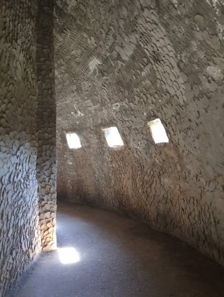 塔分三層,從低到高分別代表地獄、人間和天堂。“地獄”的雕像多以惡鬼骷髏為主,沿著“天堂地獄塔”張開(kāi)的嘴巴進(jìn)入,拾階而上,沿著一層環(huán)繞的塔邊,塔心設(shè)計(jì)為用水泥澆筑的各種地獄景象,光線從塔壁蜿蜒進(jìn)去,微弱的光打在面目可怖的鬼怪雕塑上,讓人心生敬畏。
