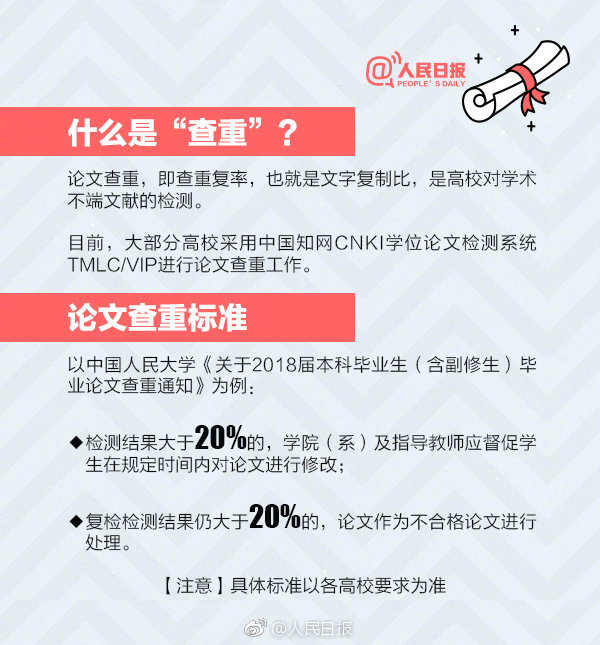 據(jù)調查,部分學校畢業(yè)論文“查重率”從原來的30%以內降低到20%,更嚴格的甚至降到了8%以下。還有學校增加了重審環(huán)節(jié),即對已畢業(yè)學生的畢業(yè)論文進行質量跟蹤監(jiān)控,一旦被查出高于查重率,將直接取消學位證書與畢業(yè)證書。