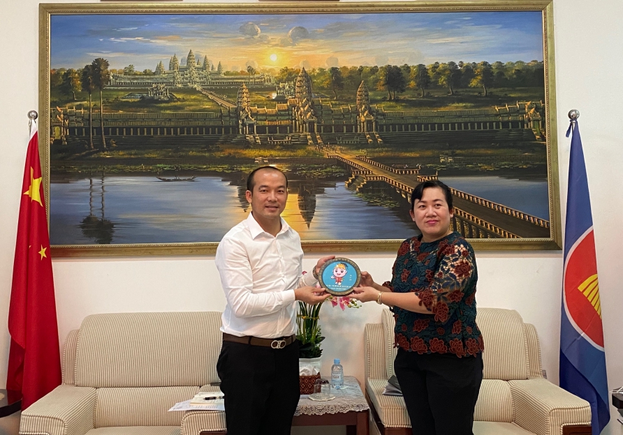 2020年9月8日下午,廣西金沛教育執(zhí)行董事粟宥朝、國際部主任陸士偉、新媒體中心韋清清一行拜訪了柬埔寨王國駐南寧總領(lǐng)事館,受到總領(lǐng)事輝蕾娜的熱情接見。