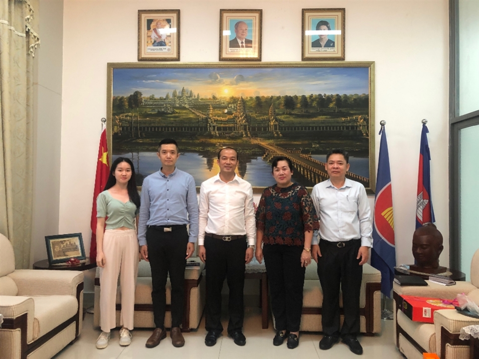 (左一新媒體中心韋清清女士、左二國際部主任陸士偉先生、中間廣西金沛教育執(zhí)行董事粟宥朝先生、右二柬埔寨王國駐南寧總領(lǐng)事輝蕾娜女士 合影留念)