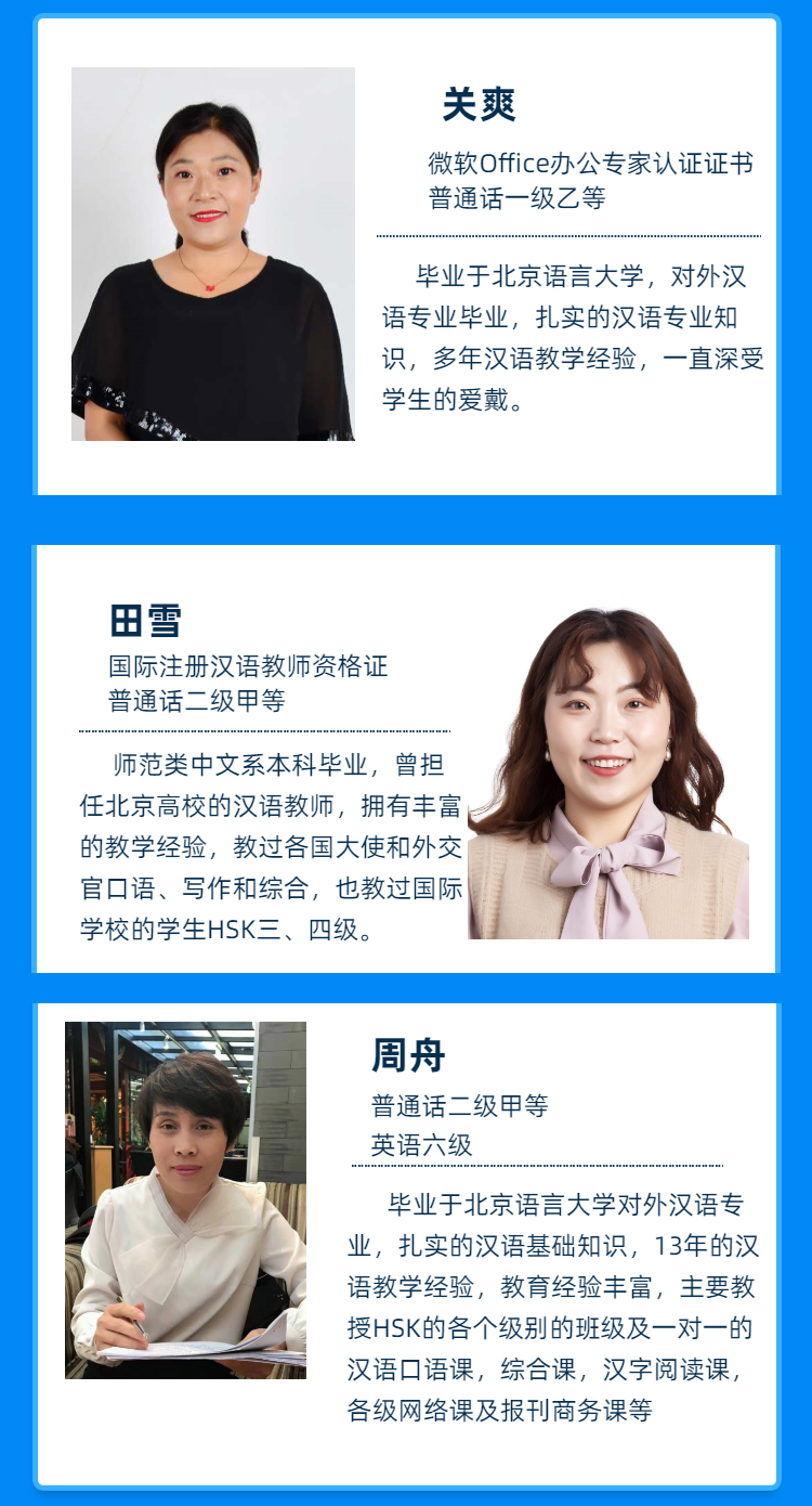 金沛漢語學(xué)院擁有雄厚師資力量和優(yōu)秀的教師團隊,中國名校名師在線課堂,扎實的專業(yè)知識、漢語考試技巧、方向,根據(jù)學(xué)生目標,制定適合的教學(xué)計劃,助你順利過關(guān)!