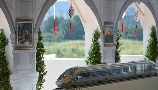 這是在泰國東北部呵叻府巴沖縣舉行的中泰鐵路合作項(xiàng)目一期工程開工儀式上展出的中國復(fù)興號(hào)高鐵列車模型(12月21日攝)。