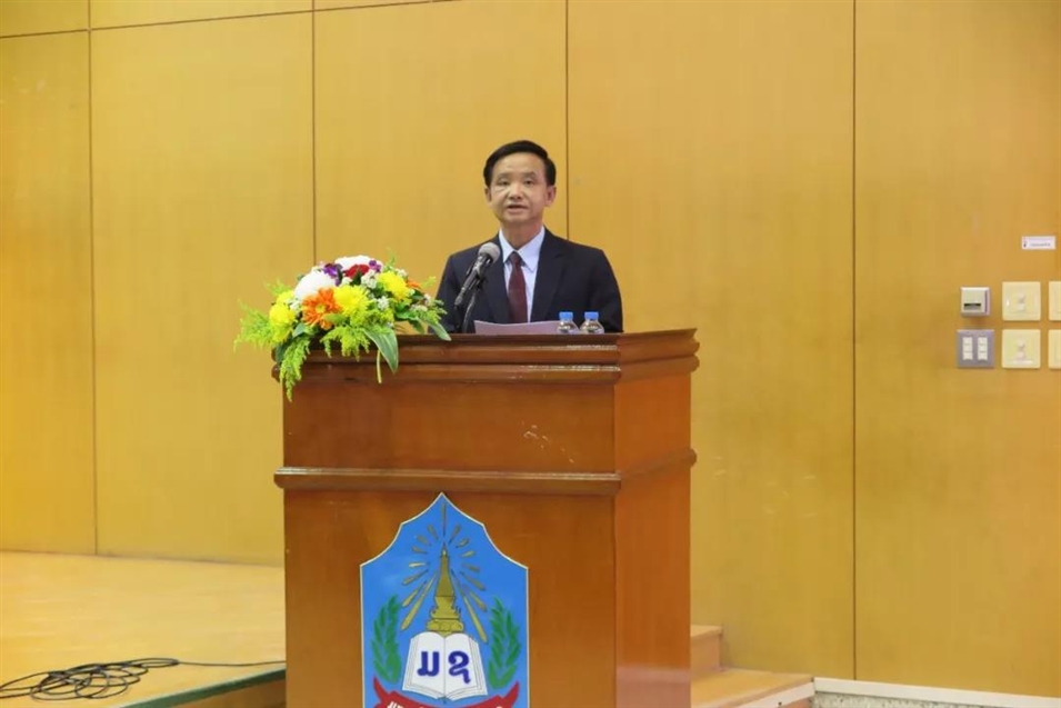 老撾國立大學(xué)副校長洪佩·占塔馮致歡迎辭。他代表老撾國立大學(xué)全體師生對許琳參事及代表團(tuán)一行到來表示熱烈歡迎!洪佩·占塔馮副校長回顧了老撾國立大學(xué)孔子學(xué)院從建立到快速發(fā)展的歷程。他說,許琳參事在任孔子學(xué)院總部總干事、中國國家漢辦主任期間,對老撾國立大學(xué)孔子學(xué)院的發(fā)展給予了熱情關(guān)懷,并大力推動“中國政府援老撾國立大學(xué)孔子學(xué)院項目”的落實,他代表國立大學(xué)對許琳參事表示衷心感謝!他同時還表示,許琳參事本次講座的主題非常有意義,對教育全球化的發(fā)展提出了機(jī)遇和挑戰(zhàn),也有利于促進(jìn)老撾國立大學(xué)鏈接區(qū)域與國際的未來發(fā)展。