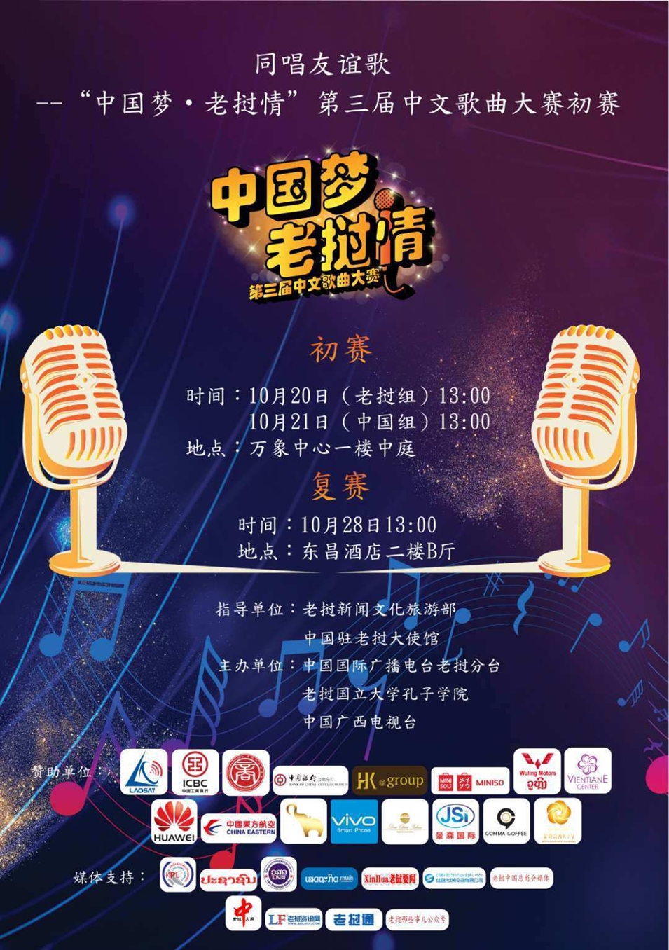 “中國(guó)夢(mèng)·老撾情”第三屆中文歌曲大賽正在如火如荼地進(jìn)行,經(jīng)過10月20日、10月21日激烈的初賽角逐,中國(guó)組、老撾組分別有15名選手進(jìn)入復(fù)賽。