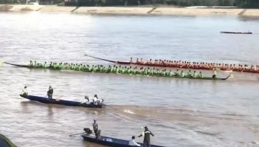 龍舟賽作為開門節(jié)的盛大活動之一,歷來受到廣泛關(guān)注。今年雖然因老撾各種災禍頻發(fā)受到一定程度的影響,只有7支男子隊,5支女子隊報名參加,但場面還是熱鬧非凡。